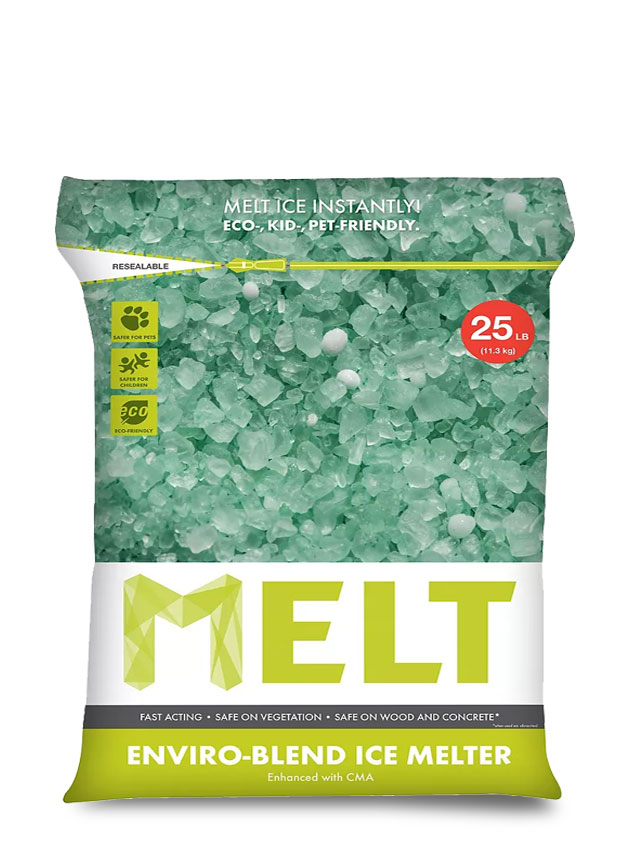 Snow Joe MELT Enviro-Blend Ice Melter provides a greener, yet equally effective, deicing alternative to more harmful melting agents. When used as directed, MELT enviro-blend will not harm grass, wood, concrete, metals or other vegetation and is safer for pets, children and the environment.